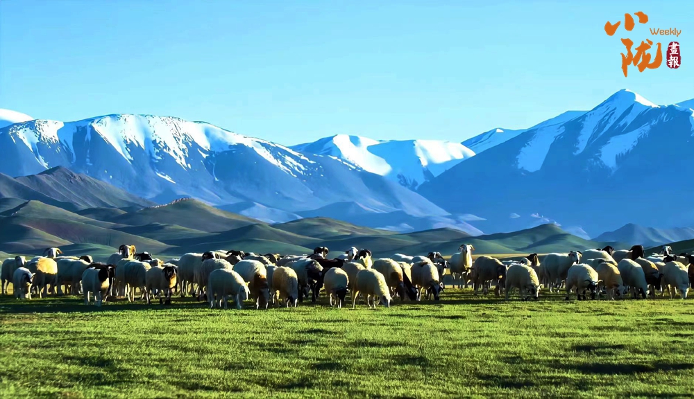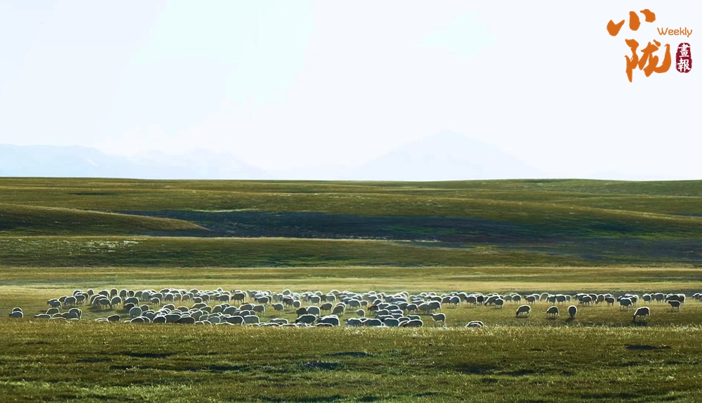 羊群猶如無(wú)數(shù)顆珍珠灑落在滿目的金色里,為這片廣袤的大地增添了無(wú)限的色彩,使得整個(gè)草原動(dòng)靜相宜。