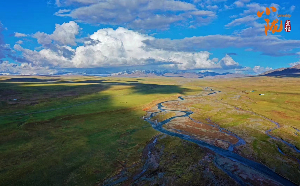 這里水草豐盈,生態(tài)和諧,碧綠的牧場(chǎng),潔白的羊群,飄飛的經(jīng)幡,給寧?kù)o的草原,注入了空靈的氣息。