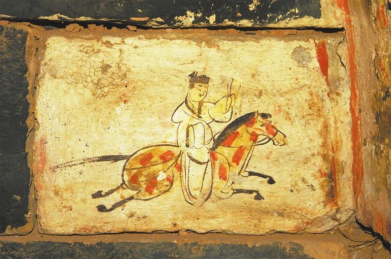 許三灣城魏晉十六國墓,20世紀(jì)90年代發(fā)掘,出土有彩繪畫像磚,有前秦建元十四年(公元378年)紀(jì)年磚。