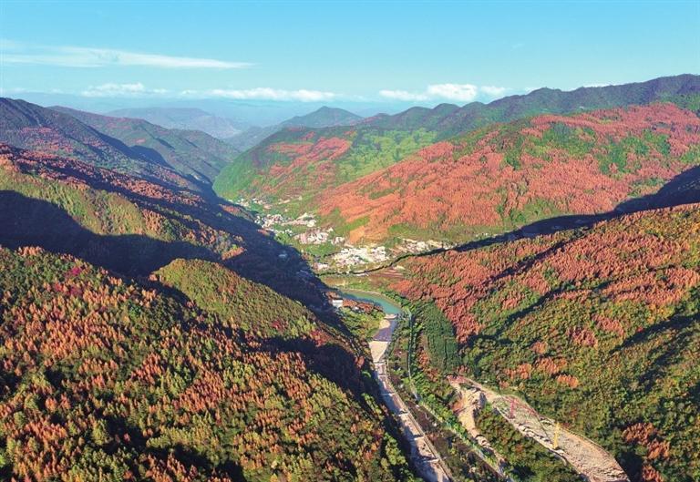 金秋時(shí)節(jié),位于宕昌縣的官鵝溝國(guó)家森林公園秋色盡染,斑斕如畫。