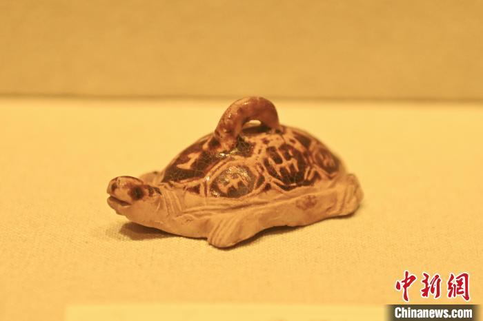 10月27日,在甘肅省博物館內(nèi)展陳的褐釉瓷龜。中新社記者 李亞龍 攝