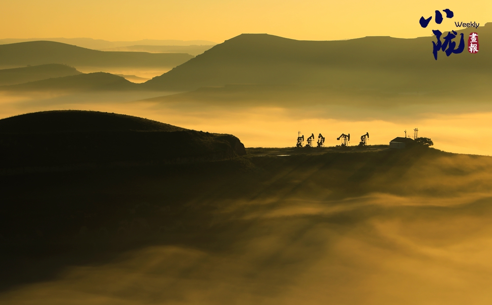 傍晚,空中泛起淡淡云霧環(huán)繞在溝壑之間,呈現(xiàn)出華池別樣的霧海景觀,遠處一架架抽油機在上下舞動,“舞姿”靈動而優(yōu)美。