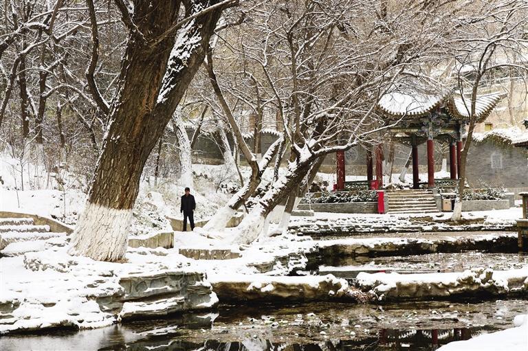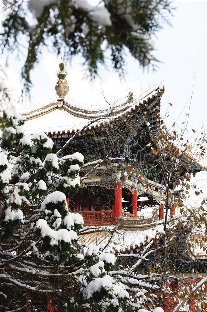 11月25日,雪后的蘭州五泉山公園銀裝素裹,迷人雪景如畫。古老亭臺(tái)樓閣紅墻玉頂、參天古樹玉樹瓊枝,宛如大地書寫的一幅“水墨丹青”,美不勝收,游客紛至沓來(lái),賞雪、拍照,盡情享受清爽的空氣和潔白的美景。 奔流新聞·蘭州晨報(bào)記者 裴強(qiáng) 攝