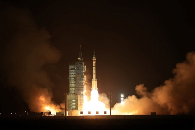 今朝再啟新驕,引無數(shù)英雄競弄潮。念酒泉蓄勢,六環(huán)繞地;文昌送遠(yuǎn),八陣沖霄。神箭飛馳,雄姿耀世,廣宇閑庭信步遙。征程上,續(xù)航天偉業(yè),風(fēng)勁旗飄。