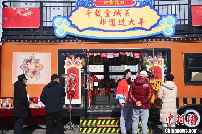2月8日,甘肅省蘭州市城關(guān)區(qū)“非遺年貨購物月”活動現(xiàn)場,游人逛街。中新社記者 李亞龍 攝