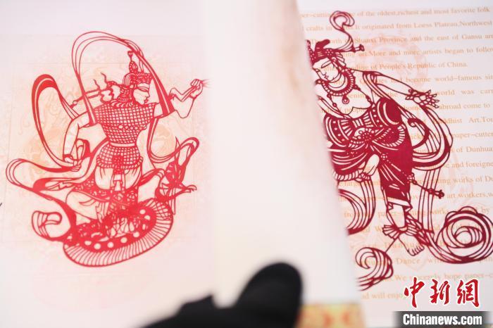 2月8日,甘肅省蘭州市城關(guān)區(qū)“非遺年貨購物月”活動現(xiàn)場展出的敦煌剪紙文創(chuàng)產(chǎn)品。中新社記者 李亞龍 攝