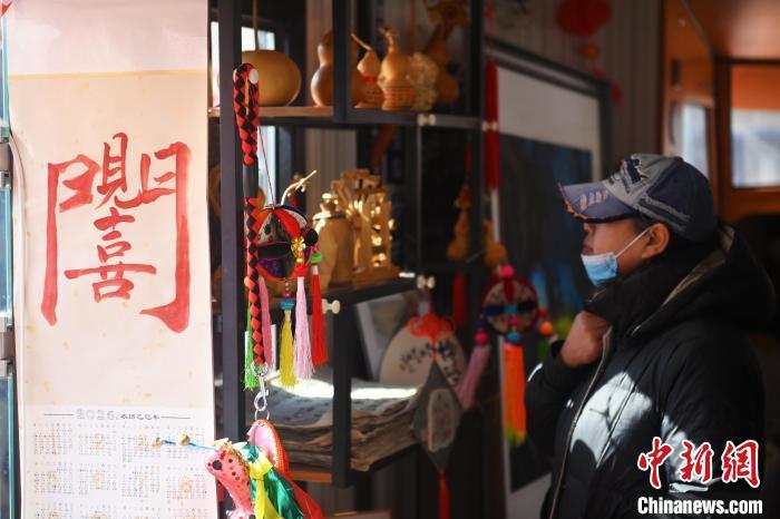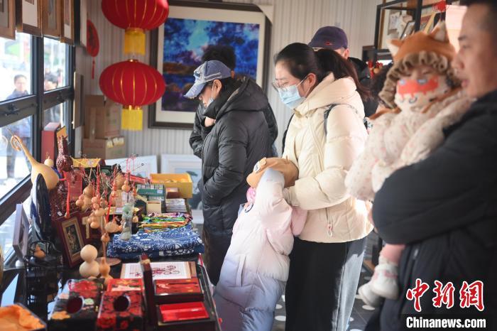 2月8日,甘肅省蘭州市城關(guān)區(qū)“非遺年貨購物月”活動現(xiàn)場,游人選購非遺文創(chuàng)產(chǎn)品。中新社記者 李亞龍 攝