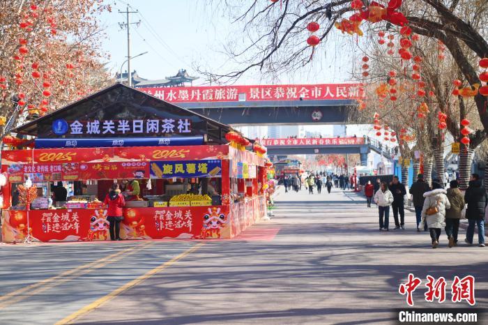 2月8日,甘肅省蘭州市城關(guān)區(qū)“非遺年貨購物月”活動現(xiàn)場,游人逛街。據(jù)悉,該活動是中國文化和旅游部非遺司組織開展的2025年“非遺好物 國潮煥新——四季非遺購物月”活動一季度的主題活動。通過豐富多樣的非遺促消費活動,發(fā)揮非遺在弘揚中華優(yōu)秀傳統(tǒng)文化、培育國貨“潮品”的積極作用?!≈行律缬浾?nbsp;李亞龍 攝