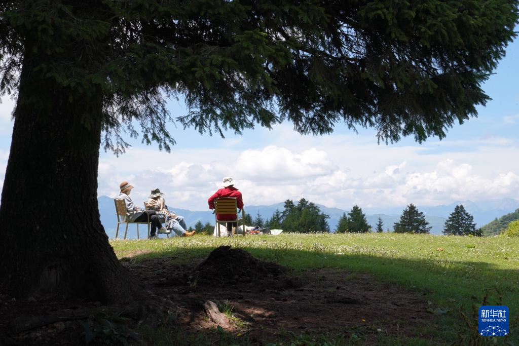 幾位游客在舟曲拉尕山上露營(yíng)游玩(7月12日攝)。新華社記者 馬寧 攝