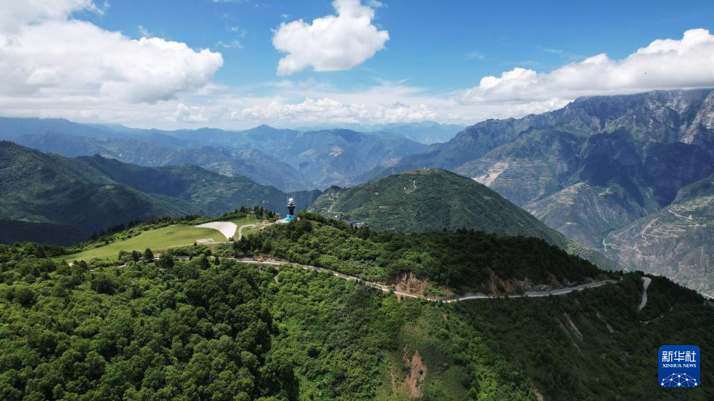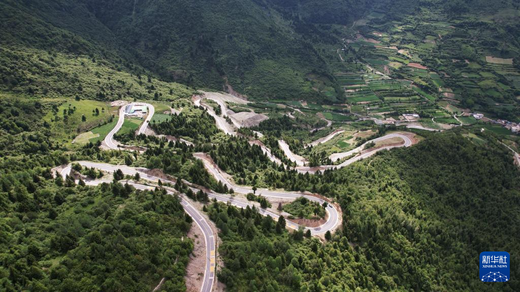 這是7月12日拍攝的舟曲“簪花之路”風(fēng)景廊道沿線風(fēng)光(無人機(jī)照片)。新華社記者 陳斌 攝