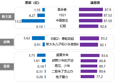 原標題:2021年暑期檔:新主流電影滿意度領(lǐng)跑