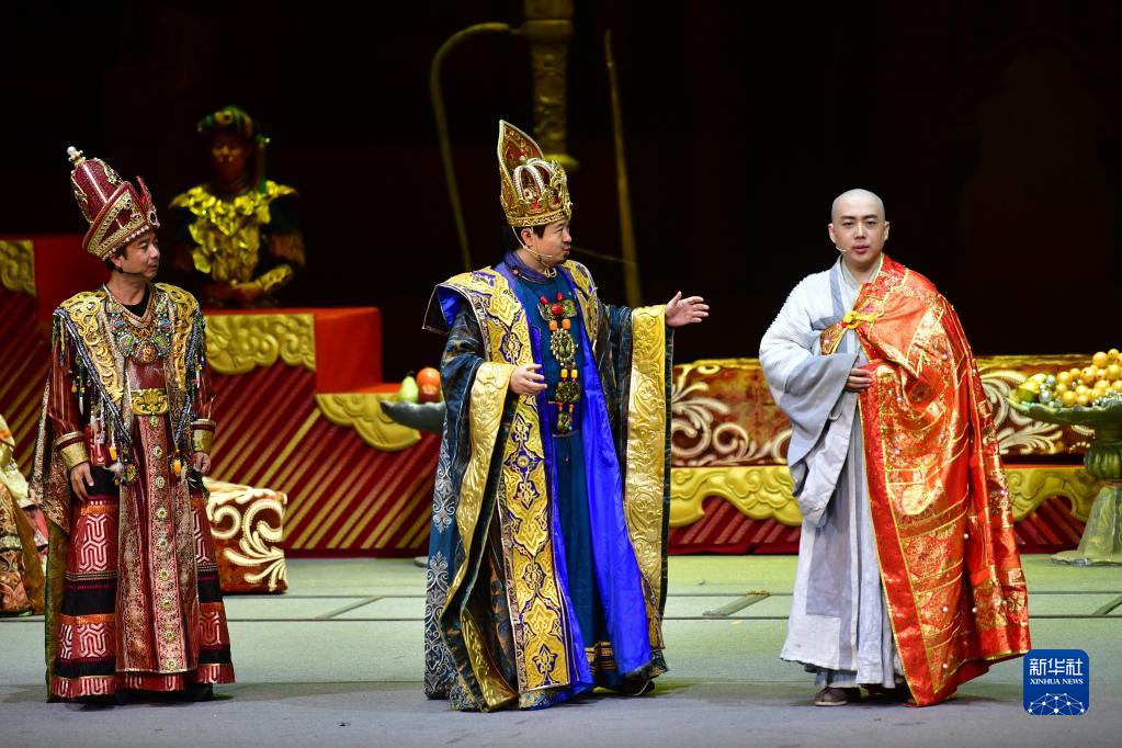演員在敦煌大劇院表演大型民族器樂(lè)劇《玄奘西行》(9月23日攝)。新華社記者 陳斌 攝