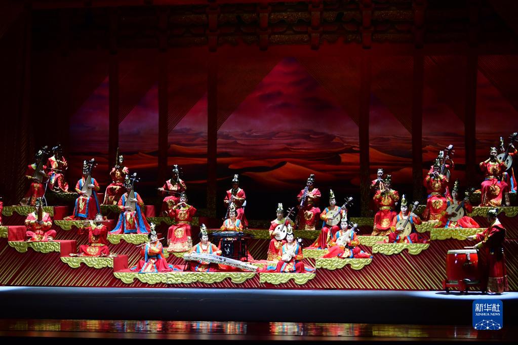 演員在敦煌大劇院表演大型民族器樂(lè)劇《玄奘西行》(9月23日攝)。