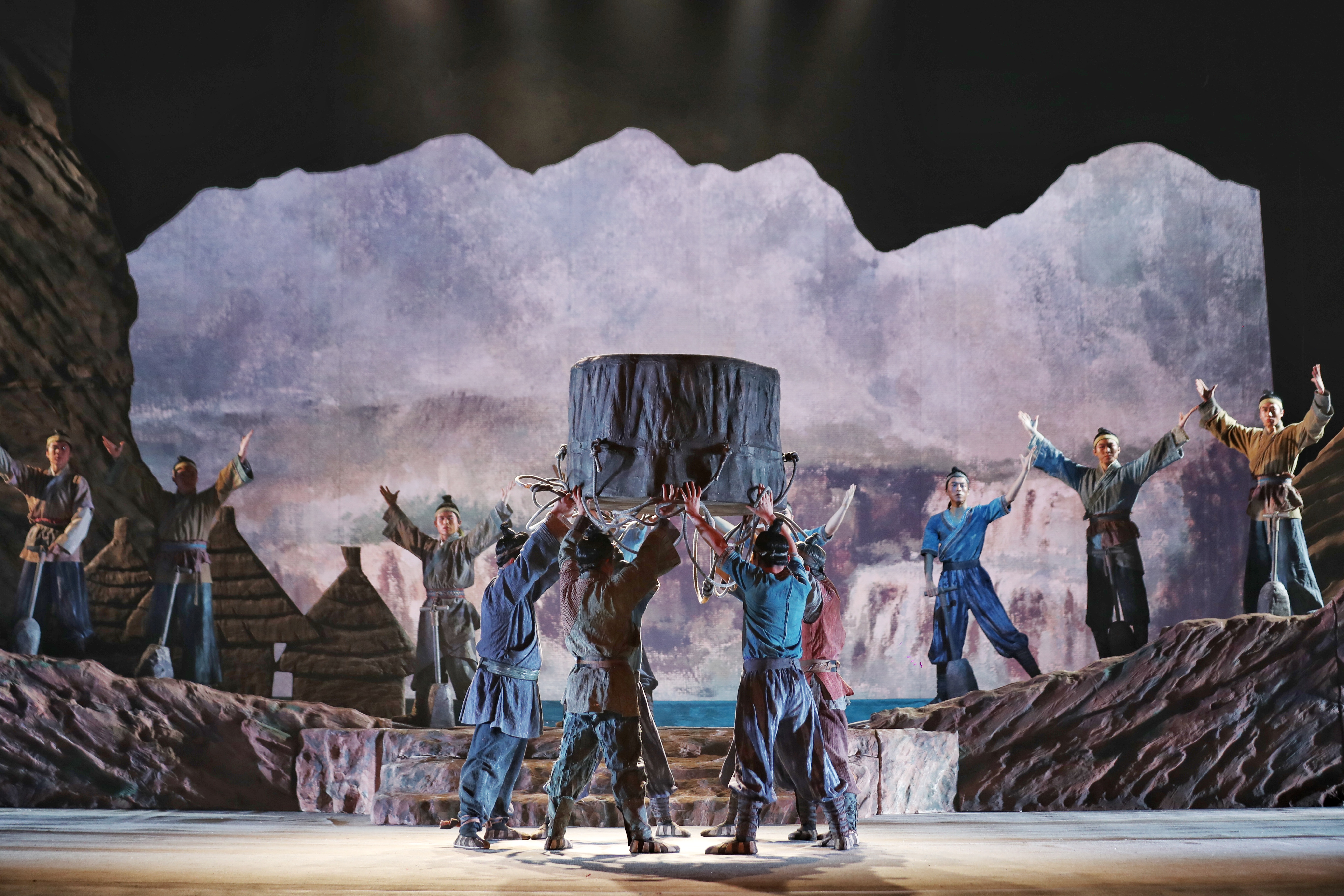 史書《尚書·禹貢》記載,大禹治水“導(dǎo)河于積石”。據(jù)考證,這里的“積石”就是甘肅省臨夏州積石山。在甘肅省文化和旅游廳全程指導(dǎo)下,甘肅省隴劇院歷時(shí)兩年精心籌備,主創(chuàng)團(tuán)隊(duì)多次赴積石山縣采風(fēng),先后十六次易稿完成劇本創(chuàng)作。全體劇組人員本著“宏大的主題和民族精神高度統(tǒng)一,黃河文化和地域特色高度統(tǒng)一,呈現(xiàn)內(nèi)容和藝術(shù)樣式高度統(tǒng)一,立意挖掘和昭示未來高度統(tǒng)一”的創(chuàng)作要求,歷經(jīng)四個(gè)多月的緊張排練,將“大禹治水源頭”故事搬上舞臺(tái)。