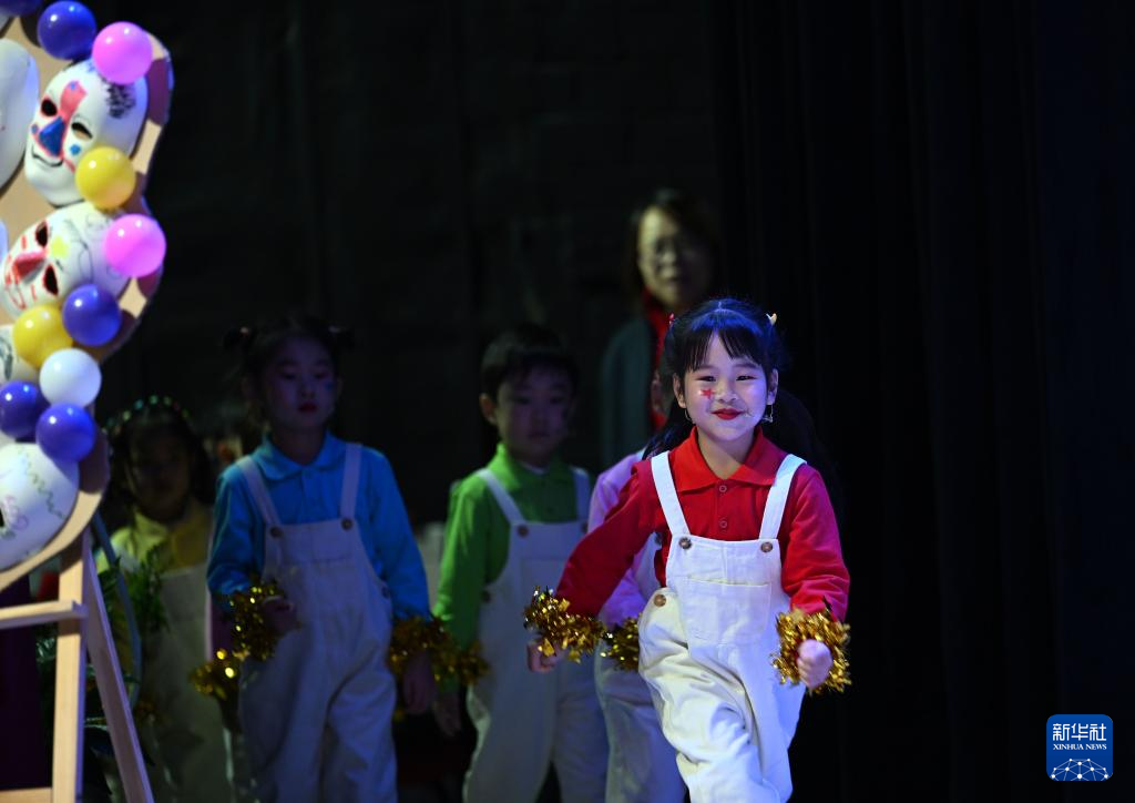 1月16日,小朋友在臺上表演。