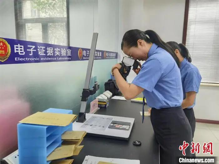 圖為電子證據(jù)實驗室司法鑒定人對涉案手機進(jìn)行編號、拍照。 崔琳攝