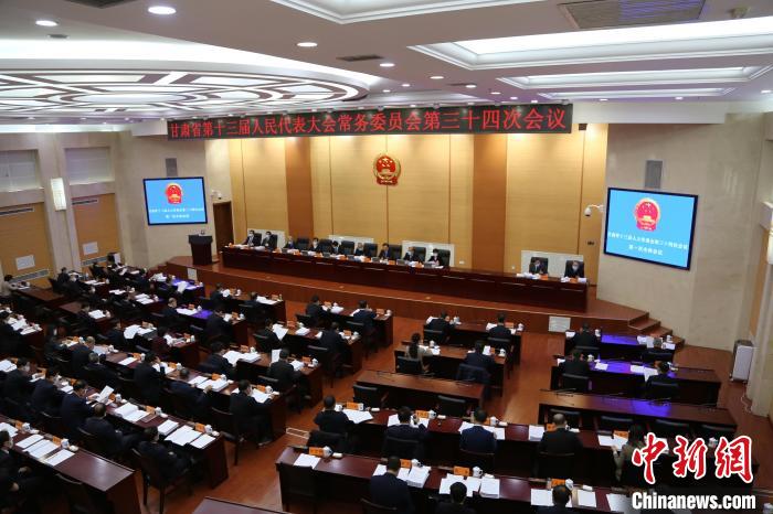 11月22至25日,甘肅省第十三屆人大常委會第三十四次會議在蘭州召開。圖為會議開幕式現(xiàn)場。 瞿杜熙昕 攝