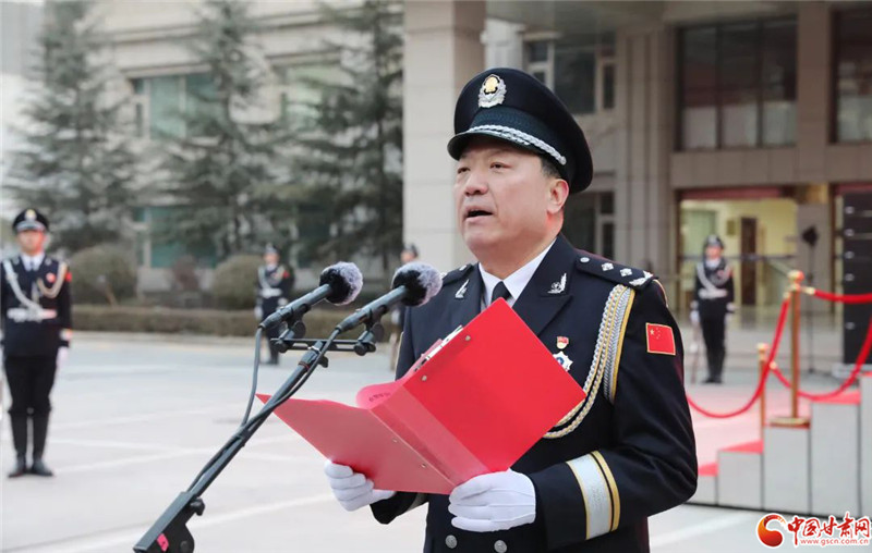 中國(guó)甘肅網(wǎng)1月10日訊(本網(wǎng)記者 程?。?月10日,蘭州市公安局舉行升警旗儀式,熱烈慶祝第三個(gè)中國(guó)人民警察節(jié),進(jìn)一步激勵(lì)全警深入學(xué)習(xí)宣傳貫徹黨的二十大精神,牢記初心使命、堅(jiān)定從警信念,匯聚向高而攀、向新而生、向遠(yuǎn)而行的磅礴力量,推動(dòng)新時(shí)代蘭州公安高質(zhì)量發(fā)展,為全面建設(shè)社會(huì)主義現(xiàn)代化國(guó)家、全面推進(jìn)中華民族偉大復(fù)興保駕護(hù)航。省公安廳副廳長(zhǎng)、蘭州市副市長(zhǎng)、市公安局黨委書(shū)記、局長(zhǎng)王立朝出席并講話(huà)。