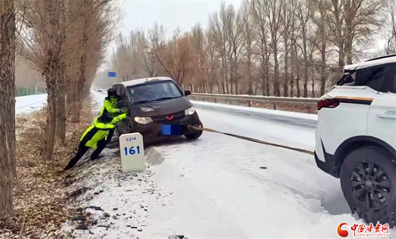 金塔縣公安局交警大隊(duì)民輔警救援被困車(chē)輛