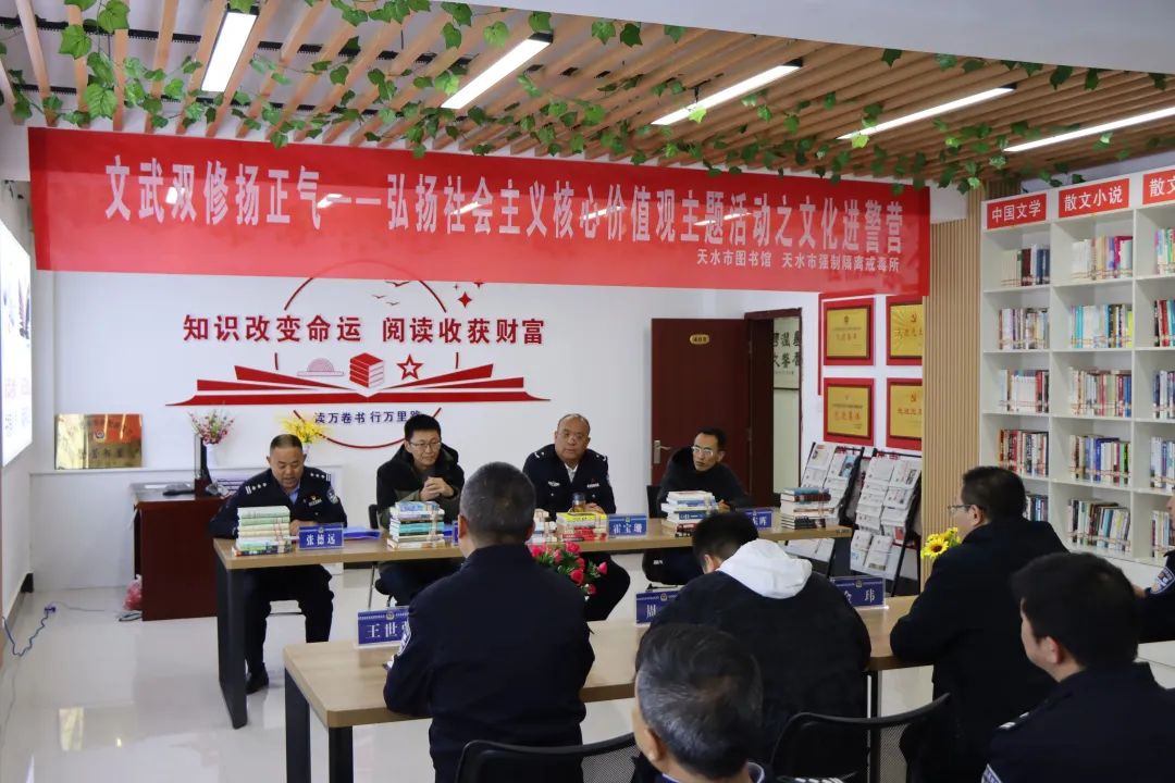 為大力營造全體民輔警愛讀書、讀好書、善讀書的濃厚氛圍,4月24日,在全民讀書月之際,天水市公安局聯合市圖書館在天水強制隔離戒毒所開展“全民讀書月·文化進警營”活動。
