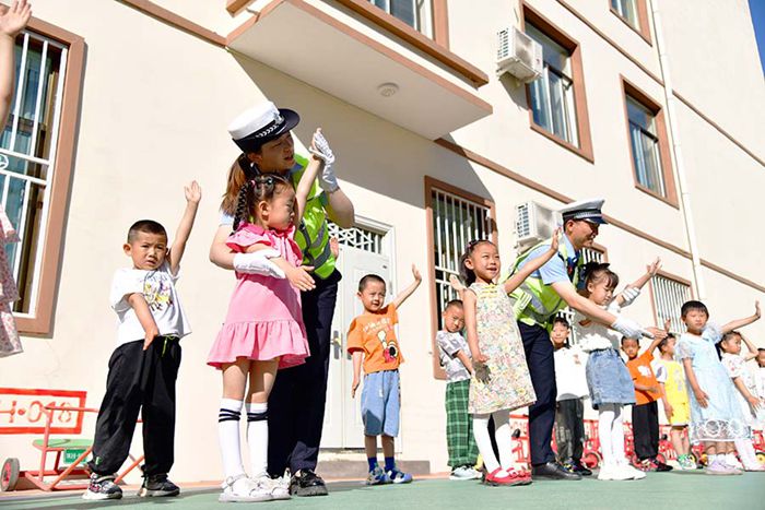 6月13日,臨澤縣公安局交警大隊(duì)法治宣傳民警走進(jìn)濱河幼兒園,通過現(xiàn)場(chǎng)授課、有獎(jiǎng)競(jìng)答、認(rèn)交通指示牌等寓教于樂的方式向幼兒們普及了道路交通標(biāo)識(shí)等常識(shí),提高幼兒們的交通安全意識(shí)。新甘肅·甘肅法制報(bào)通訊員 安學(xué)海 攝