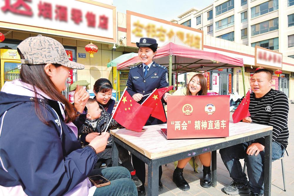 3月12日,臨澤縣公安局工業(yè)開(kāi)發(fā)區(qū)派出所民警走街入戶(hù),與群眾共同學(xué)習(xí)全國(guó)兩會(huì)精神。新甘肅·甘肅法治報(bào)通訊員安學(xué)海攝