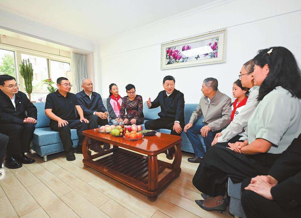 9月10日至13日,中共中央總書記、國家主席、中央軍委主席習近平在甘肅考察。這是11日下午,習近平在蘭州市安寧區(qū)棗林西社區(qū)考察時,同退休老黨員李宗彪一家人圍坐在一起拉家常。新華社記者燕雁