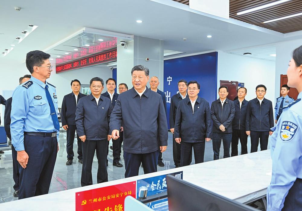 9月10日至13日,中共中央總書記、國家主席、中央軍委主席習近平在甘肅考察。這是11日下午,習近平在蘭州市公安局安寧分局劉家堡派出所考察。新華社記者燕雁