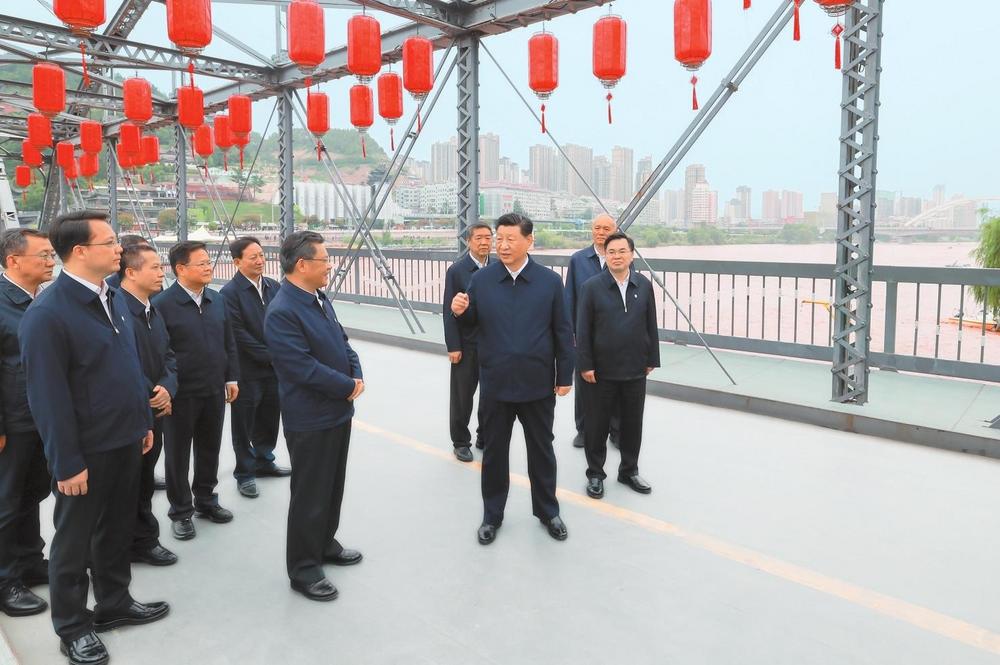 9月10日至13日,中共中央總書記、國家主席、中央軍委主席習近平在甘肅考察。這是11日下午,習近平在蘭州中山橋上了解黃河生態(tài)保護情況。新華社記者王曄