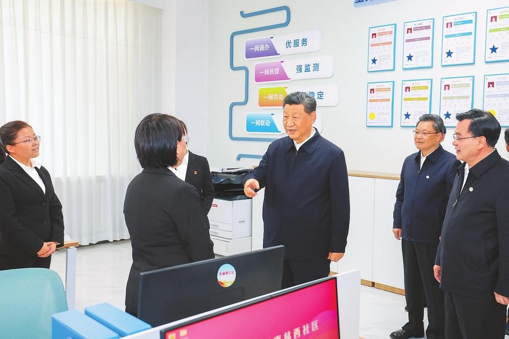 9月10日至13日,中共中央總書記、國家主席、中央軍委主席習近平在甘肅考察。這是11日下午,習近平在蘭州市安寧區(qū)棗林西社區(qū)黨群服務(wù)中心考察。新華社記者王曄