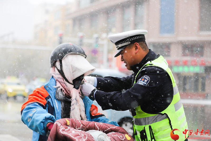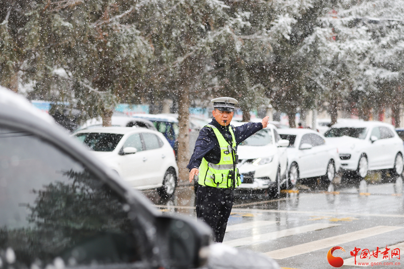 隴拍客丨民樂(lè):雪紛飛 “警”相隨 交警守護(hù)平安出行路