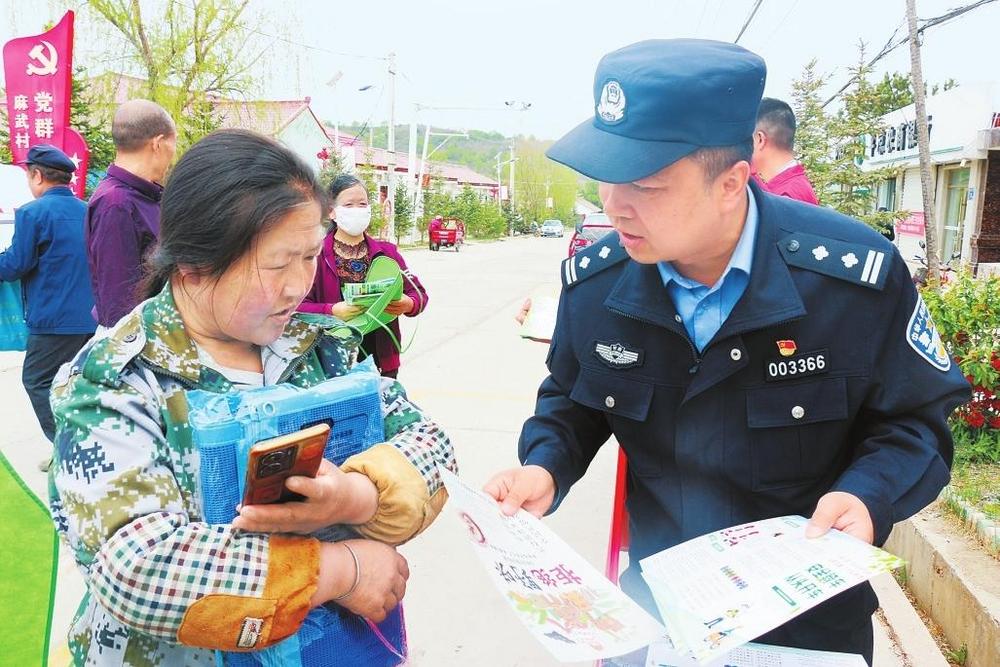 民警向群眾發(fā)放宣傳資料。5月12日,省公安廳森林公安局太統(tǒng)崆峒山分局組織開展防災(zāi)減災(zāi)日宣傳活動(dòng)。 新甘肅·甘肅法治報(bào)通訊員薛瑞攝