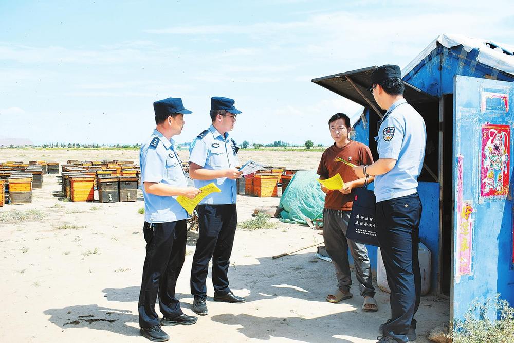 為保障外來養(yǎng)蜂群眾生產(chǎn)生活安全,連日來,山丹縣公安局東樂派出所立足主責(zé)主業(yè),組織民輔警深入田間地頭化身“護(hù)蜂人”,以流動人口服務(wù)管理、反詐宣傳、交通安全、治安防范為重點,扎實開展系列護(hù)航行動,營造安全穩(wěn)定的“蜂蜜”生產(chǎn)環(huán)境。