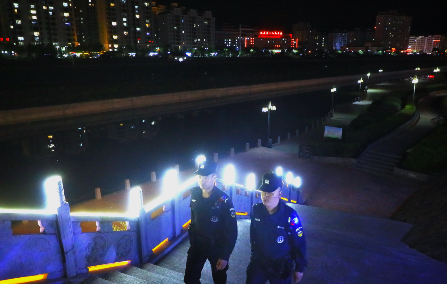 晚上九點(diǎn)的新城公園,水波在微光下輕輕蕩漾,本該靜謐的湖畔卻傳來孩童未歇的嬉鬧。幾個(gè)小小的身影,趴在湖邊手持小小的漁網(wǎng)在撈小魚,離幽暗的深水區(qū)不過幾步之遙。教導(dǎo)員趙啟和隊(duì)友悄然靠近,沒有刺耳的警笛,只有肩燈和手電筒在夜色中投下柔和的光暈。趙啟緩緩蹲下,視線與孩子們齊平。“嘿,小家伙······”他的聲音溫和卻帶著不容置疑的鄭重,“晚上不能在湖邊玩耍,更不能冒險(xiǎn)撈魚。白天讓大人帶你們過來玩,好不好?”肩燈的光映在孩子們好奇又略帶怯意的臉上。一個(gè)捏著螢火蟲的小男孩仰頭問:“警察叔叔,明天你還會在這里嗎?”趙啟笑了,笑容里帶著疲憊,也帶著堅(jiān)定:“當(dāng)然,白天叔叔也會巡邏,保護(hù)大家安全。”他目送著孩子們的小手被匆匆趕來的家長緊緊牽住,融入回家的燈火。
