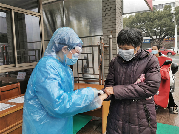 江蘇省常熟市第五人民醫(yī)院監(jiān)察室主任林潔已離開臨床崗位很多年,疫情發(fā)生后她選擇在一線,在發(fā)熱病人預檢分診處,守好第一道關口。(江蘇省常熟市紀委監(jiān)委 顧薇 攝)