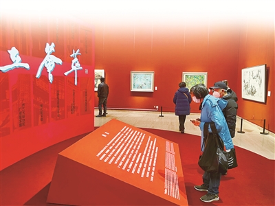 20世紀(jì)50年代以后,反映熱火朝天生活的藝術(shù)樣式漸漸成為主流,畫家們開始在傳統(tǒng)筆墨中融入新的風(fēng)格。江蘇省美術(shù)館展廳展出了江蘇藝術(shù)群體“新金陵畫派”的作品。新金陵畫派是20世紀(jì)中國畫壇的重要畫派之一,畫家們倡導(dǎo)“思想變了,筆墨就不能不變”的藝術(shù)理念,在繼承傳統(tǒng)的基礎(chǔ)上以新筆墨反映時(shí)代的巨大變化。