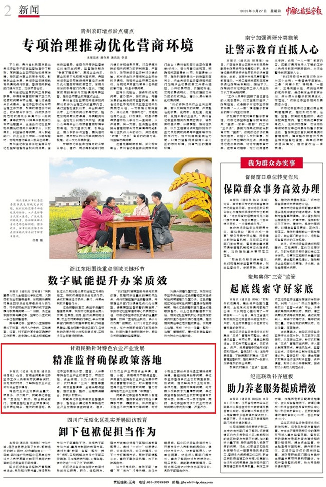 民勤縣紀委監(jiān)委制定監(jiān)督重點提示,督促各鄉(xiāng)鎮(zhèn)紀委聚焦特色農業(yè)產業(yè)發(fā)展中存在的堵點、難點,以及農業(yè)產業(yè)項目資金申請、管理、分配、使用等環(huán)節(jié)跟進監(jiān)督,嚴肅查處在特色農業(yè)產業(yè)發(fā)展中項目運營管理不到位、財務管理不規(guī)范等不正之風和腐敗問題,著力打通特色農業(yè)產業(yè)發(fā)展“中梗阻”。