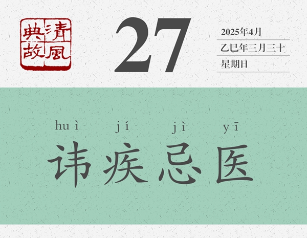 蔡桓公剛得病的時候,自己可能還感覺不到。神醫(yī)扁鵲說他有病了,他卻不承認(rèn)自己有病。不承認(rèn)自己有病,也就不會讓扁鵲給他治病。結(jié)果小病拖成中病,中病拖成大病,大病終于要了他的命。后人即以“諱疾忌醫(yī)”為典,比喻不能正視自己的缺點(diǎn)錯誤,不愿聽取別人的意見建議。清人王永彬《圍爐夜話》第一三八則:“偶緣為善受累,遂無意為善,是因噎廢食也;明識有過當(dāng)規(guī),卻諱言有過,是諱疾忌醫(yī)也。”