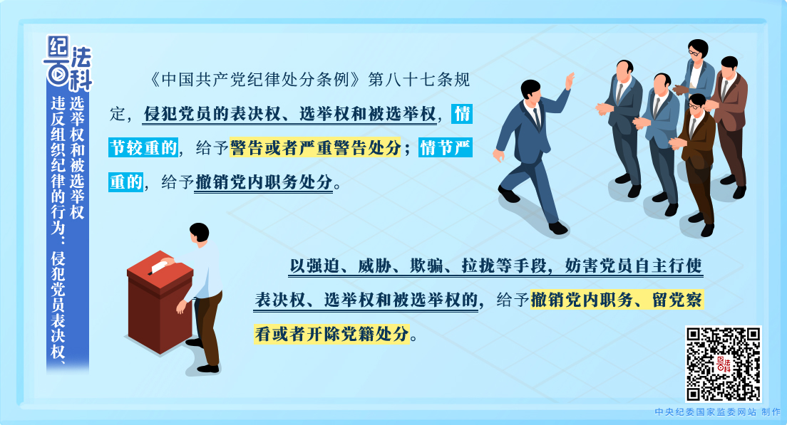 從各地紀(jì)委監(jiān)委通報的典型案例看,一些黨員干部和公職人員通過各種手段侵犯黨員的表決權(quán)、選舉權(quán)和被選舉權(quán),均受到嚴(yán)肅處理。