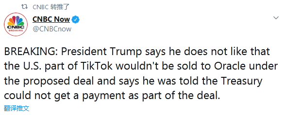 【環(huán)球網(wǎng)快訊】據(jù)CNBC剛剛消息,美國(guó)總統(tǒng)特朗普在16日的白宮新聞?dòng)浾邥?huì)上稱(chēng),他不喜歡目前甲骨文與TikTok目前擬定的合作協(xié)議,原因是TikTok的美國(guó)業(yè)務(wù)不會(huì)出售給甲骨文,而且他還被告知,美國(guó)財(cái)政部將無(wú)法從這次交易中拿到補(bǔ)償。