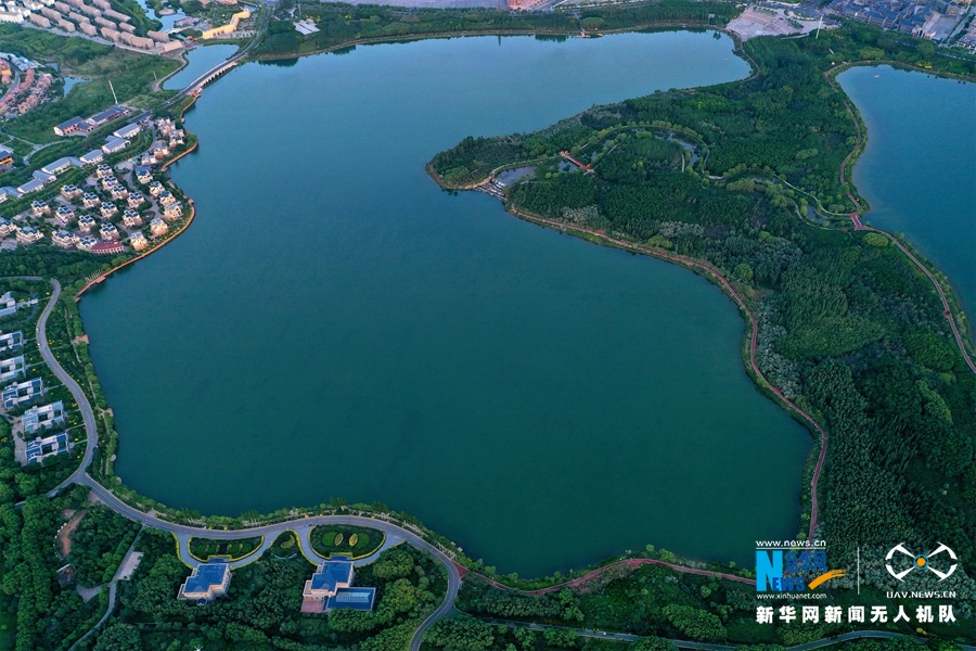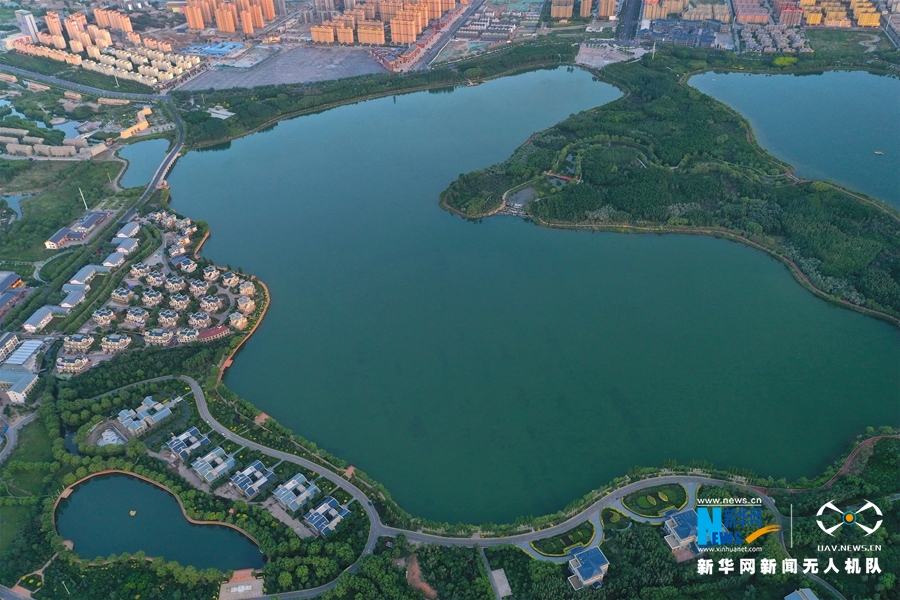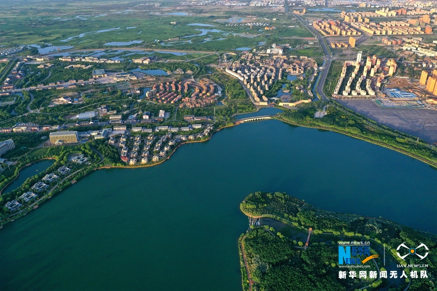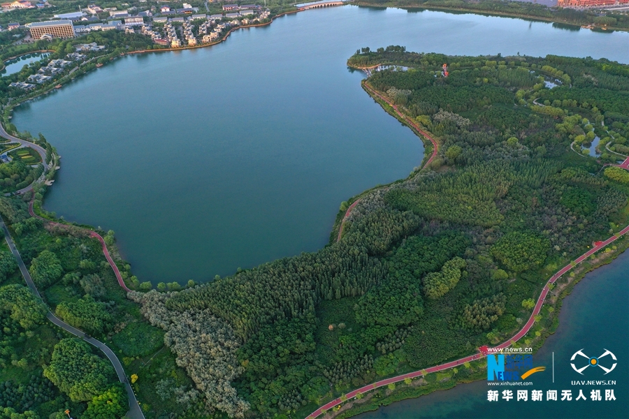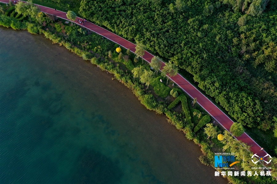 這是近日航拍的甘肅省張掖市蘆水灣生態(tài)景區(qū)。蘆水灣生態(tài)景區(qū)位于張掖市濱河新區(qū),湖水湛藍(lán),草木翠綠,景色宜人,宛如一顆鑲嵌在河西走廊的“寶石”。新華網(wǎng)發(fā)(吳學(xué)珍 攝)