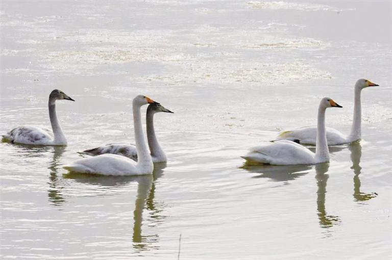 中國甘肅網(wǎng)1月7日訊 據(jù)蘭州日報報道(記者 董永前 攝)最近幾天,西固區(qū)達川鎮(zhèn)三江口水域,成群天鵝在這里“落戶安家”,成為當?shù)匾患恍〉男侣?,吸引不少市民和游客前來觀賞。