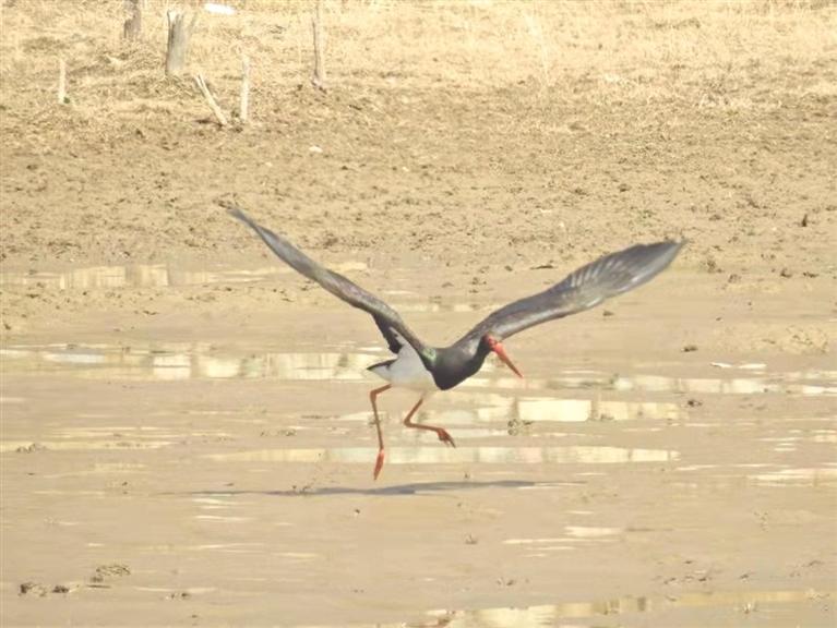 黑鸛是國家一級重點保護野生鳥類,喜在河流、沼澤、濕地中覓食魚、蛙、昆蟲等,繁殖于崖壁或高樹上。黑鸛在我國分布于東北、西北、華北等大部分地區(qū),分布較廣,但種群數量較少。黑鸛對覓食水域,環(huán)境安全性要求極高,水質清澈,水體食物豐富,對棲息環(huán)境十分“挑剔”。黑鸛現身該區(qū)域,從一個側面印證了該區(qū)域水質向好。據介紹,連年來,連城保護區(qū)開展生態(tài)治理修復工程,生態(tài)環(huán)境明顯改善,該局加強水域內生物多樣性保護工作力度,引來大天鵝、黑鸛、大白鷺、普通秋沙鴨、赤麻鴨、綠頭鴨等水鳥來此棲息停歇,成為美麗風景線。