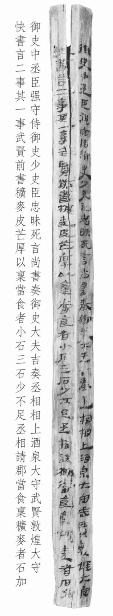 另?yè)?jù)張德芳先生考證,此簡(jiǎn)所言史實(shí)或與漢宣帝神爵年間對(duì)羌作戰(zhàn)有關(guān)。漢宣帝神爵元年(前61)西羌作亂,辛武賢被任命為破羌將軍,與敦煌太守快等發(fā)兵配合后將軍趙充國(guó)對(duì)羌作戰(zhàn),神爵二年(前60)羌事結(jié)束后辛武賢赴任酒泉太守。簡(jiǎn)文中稱辛武賢為“酒泉太守”,或許是神爵二年(前60)羌事結(jié)束后,辛武賢在面對(duì)平定西羌戰(zhàn)爭(zhēng)過(guò)程中發(fā)現(xiàn)的一些弊端諸如糧食發(fā)放不足數(shù)等問(wèn)題向朝廷提出改善的建議。