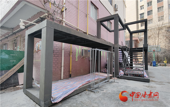 在甘肅省歌劇院辦公樓的西側(cè),一組五米高的兩層鋼架結(jié)構(gòu)赫然出現(xiàn)在記者眼前,這組“大家伙”前后制作了兩三個月時間,光是使用的角鋼就有一兩噸重,而舞臺上極具視覺沖擊力的“九宮格”截面圖,就是通過三組移動支架,儼然拼積木般進行位移組合來完成的。同時,通過位置的偏移,還將實現(xiàn)宿舍、工地、工棚以及生活場景的轉(zhuǎn)換。