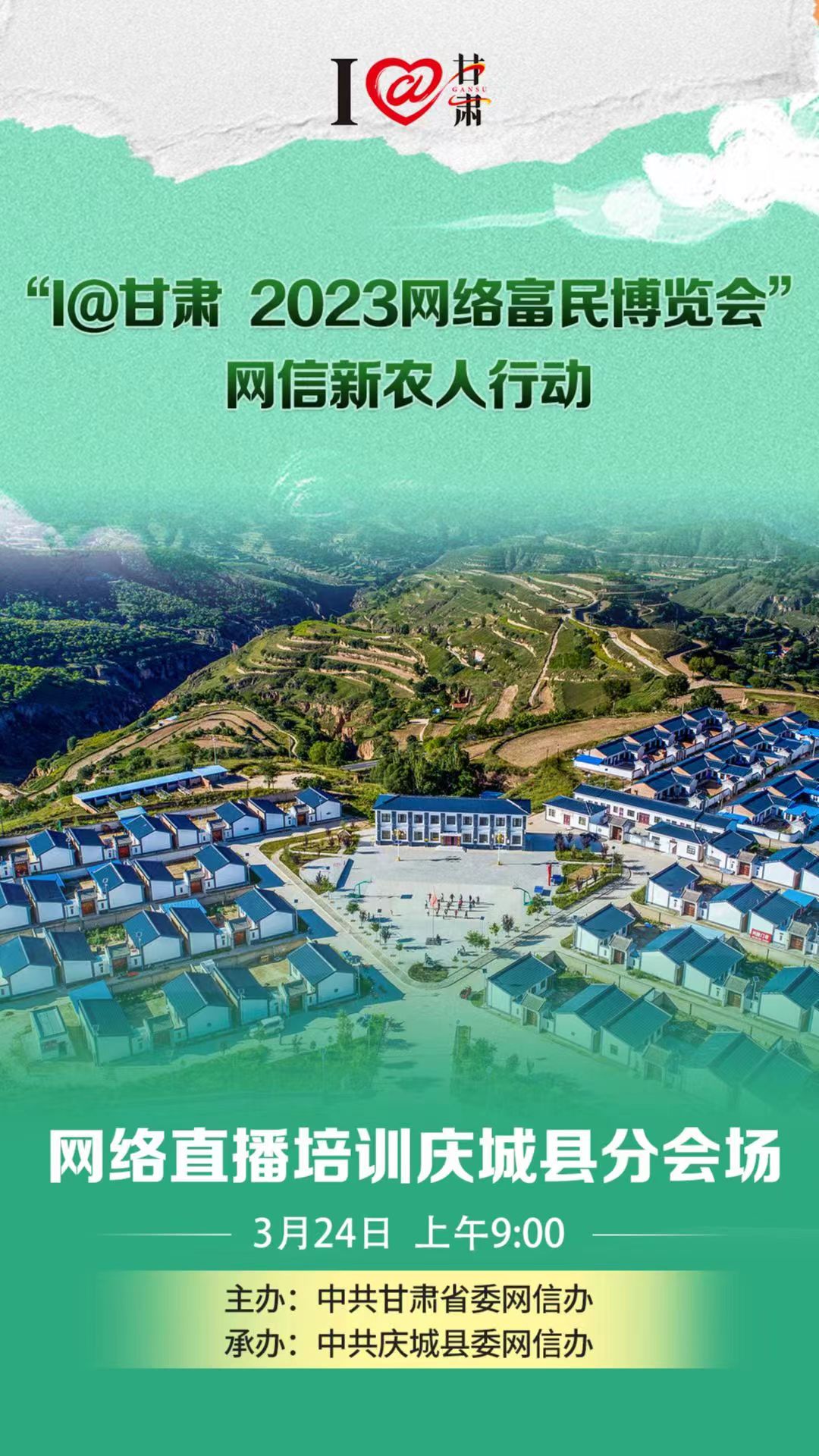 甘肅省委網(wǎng)信辦“I@甘肅 2023網(wǎng)絡(luò)網(wǎng)絡(luò)富民博覽會(huì)”網(wǎng)信新農(nóng)人行動(dòng)第4場網(wǎng)絡(luò)主播培訓(xùn)班,將于3月24日在慶陽市慶城縣舉辦