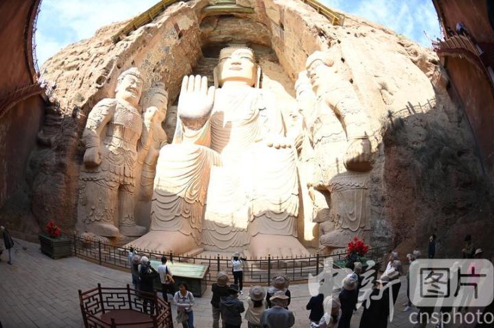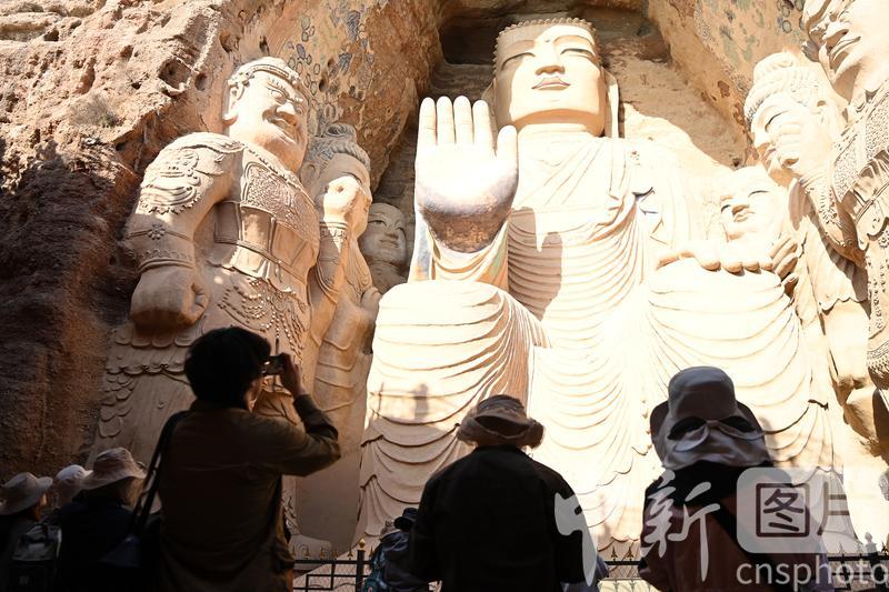 4月16日,甘肅省武威市涼州區(qū),學生在天梯山石窟參觀研學。