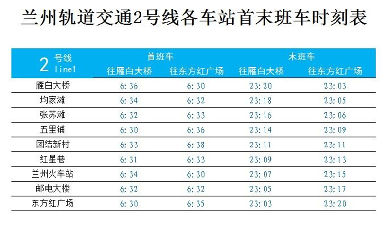 另據(jù)了解,蘭州軌道交通2號(hào)線一期工程初期運(yùn)營時(shí)間為6:30至23:20,每天運(yùn)營服務(wù)16小時(shí)50分鐘,運(yùn)行列車最小行車間隔6分20秒,最大行車間隔8分40秒,全線單程運(yùn)行平均時(shí)間約15分鐘53秒。