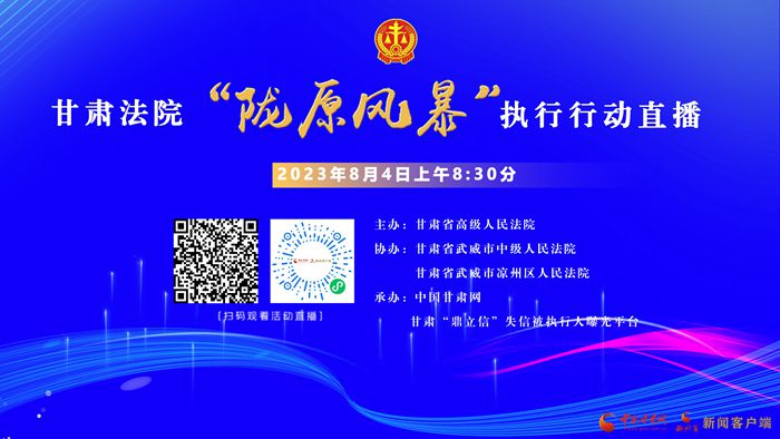 據(jù)了解,在涼州區(qū)開展的“隴原風暴”執(zhí)行行動直播活動由甘肅省高級人民法院主辦,武威市中級人民法院、涼州區(qū)人民法院協(xié)辦,中國甘肅網(wǎng)、甘肅“鼎立信”失信被執(zhí)行人曝光平臺承辦。