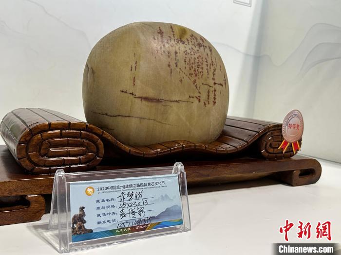 8月3日——7日,2023中國(guó)(蘭州)絲綢之路國(guó)際賞石文化節(jié)在甘肅國(guó)際會(huì)展中心舉行。圖為名為《和氏璧》的黃河石。楊娜 攝